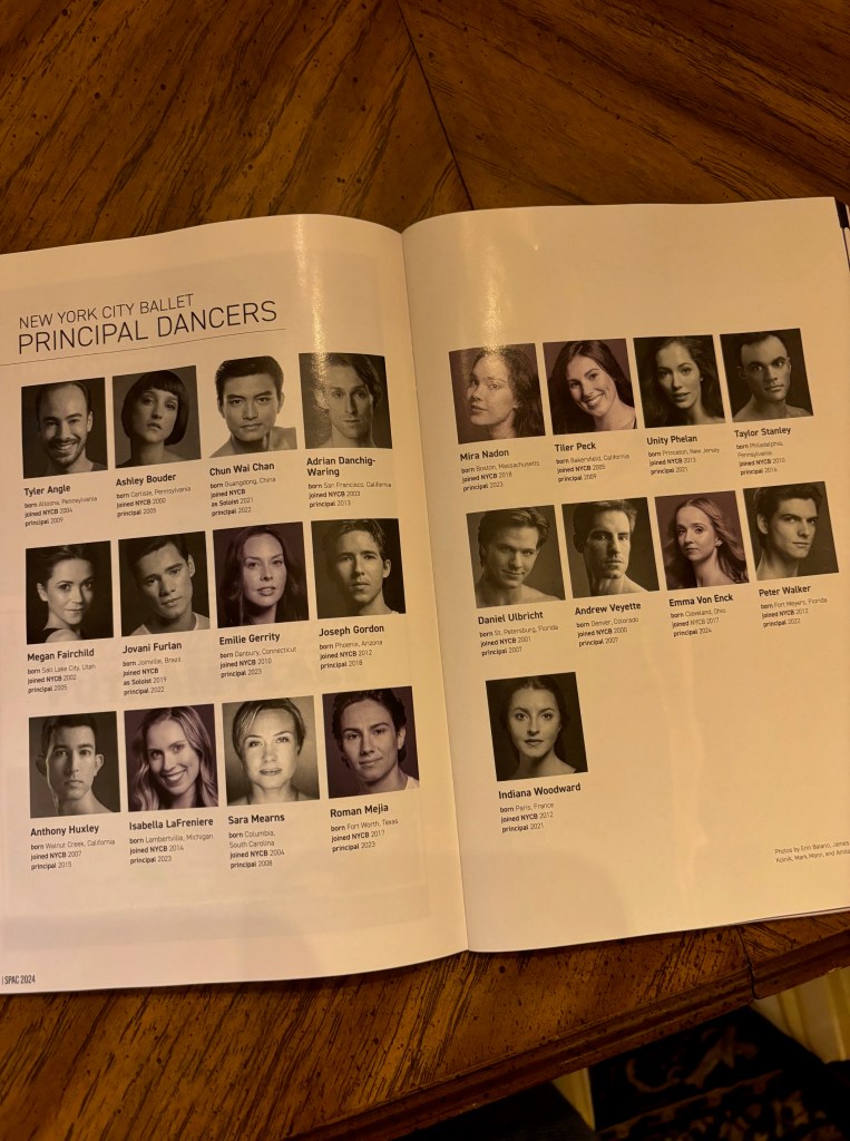 “And this one–see how she’s from Salt Lake? She’s LDS, and her brother was also a principal with the company for a while, and he was married to this one over here before he realized he was gay. Now, he dances elsewhere, a freelance performer I think, and he and his partner own a flower shop…”