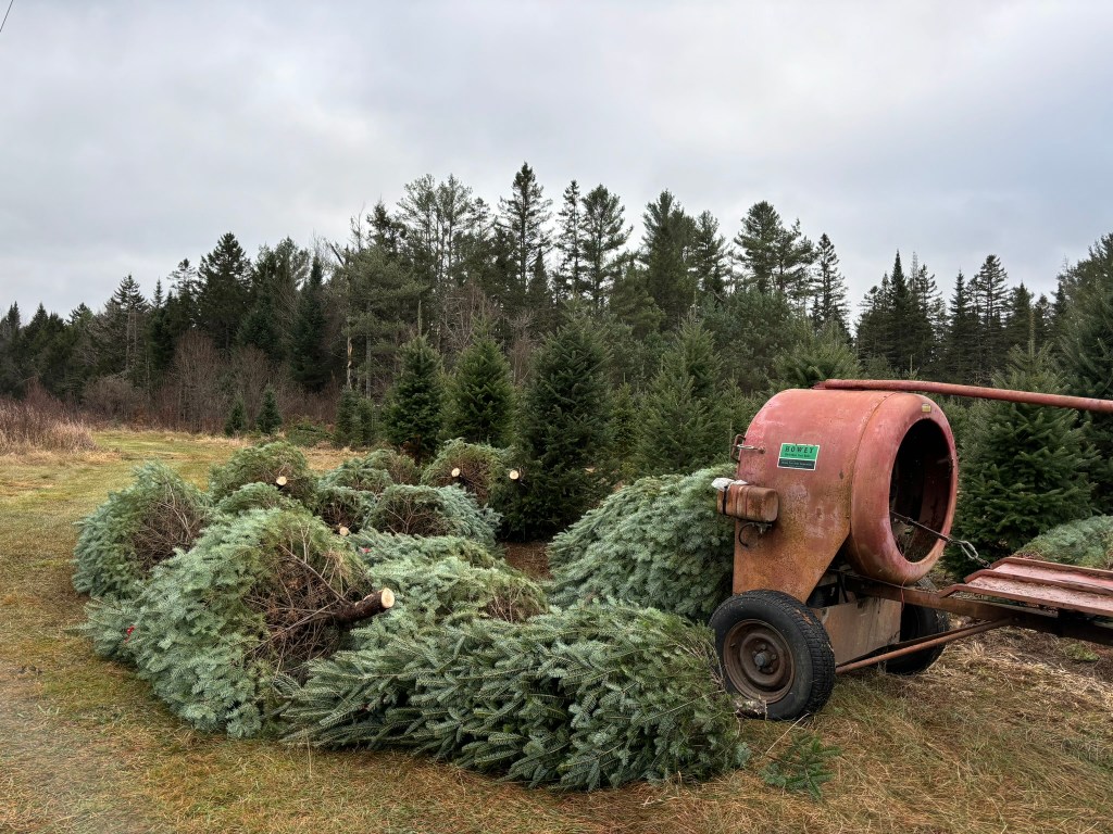 Speaking of Christmas prep, in the last week or so, the Xmas tree farmer who leases our land has been harvesting several of the Balsams and Frasiers. His crew cuts the tagged trees, sends them through a machine that wraps them in twine, then packs them into trailers. We’ve listened to the buzz of saws everyday, and sometimes they’ve been out there at work as early as 6:30 am. I can hear the chainsaws right now, as I type this.