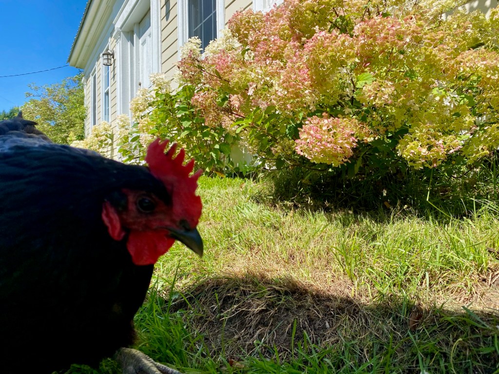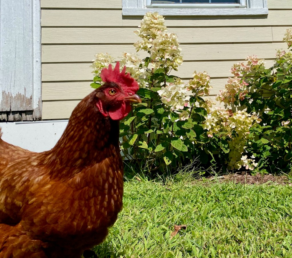That experience was hard enough, but then Beverly, our oldest Rhode Island Red, was sick. She hadn’t looked like she’d felt well for a while, moving around slowly and eating and drinking very little, her comb pale and dry. It had been weeks since she’d laid an egg. I worried she was egg tied, and I was preparing to bring her in for a saltwater bath to help her body release the egg. Or, I was preparing to provide palliative care, as I’d done with Mildred, because I sensed she wasn’t going to get better. Her last morning awake in the coop, I’d found her sitting in a nest box where she’d taken to sleeping with her little sisters, her head tucked under her wing.