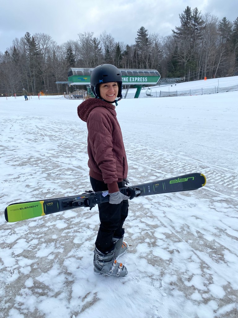 Fast-forward again to last Friday. Now, after four runs down the baby bunny hill (and three winters of skiing), I was feeling oriented and strong. I had my ski legs back. The snow was sticky, and the beginner’s area was boring me, quite frankly. I figured, if I’m going to try the real slope again, today’s the day.