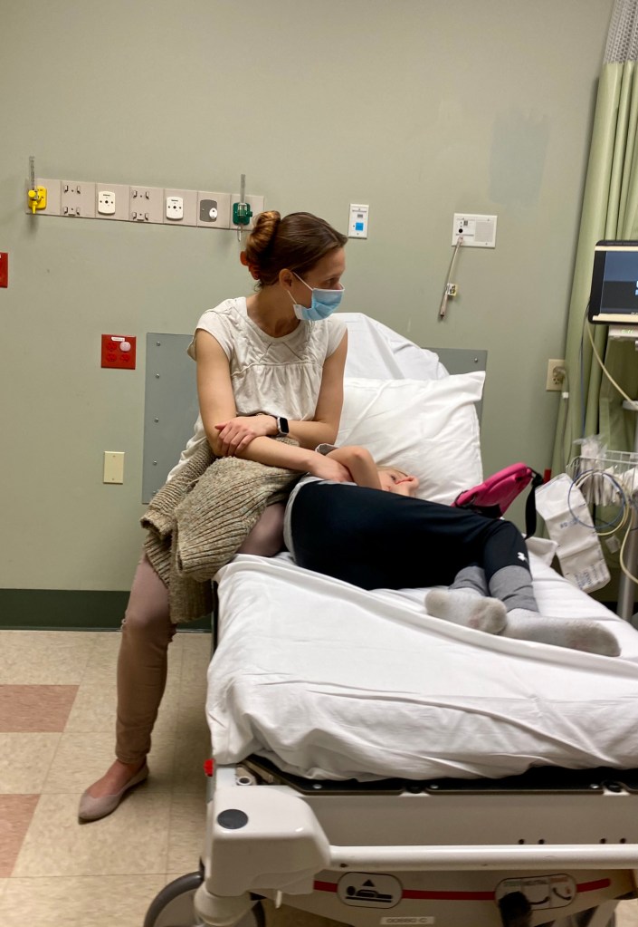 But the catch here is, Daphne is nonspeaking. That means, she can’t tell us what exactly hurts, or how exactly she’s feeling. We can only know by her behavior and body language, and even that sometimes is deceiving because of her sensory processing disorder; I don’t think she always processes or recognizes pain in the same ways we do. For example, the entire time she was down with norovirus, she never curled up and clutched her stomach, the way I did when I came down with it myself two days later. I wouldn’t have known it was her stomach bothering her if she hadn’t thrown up.