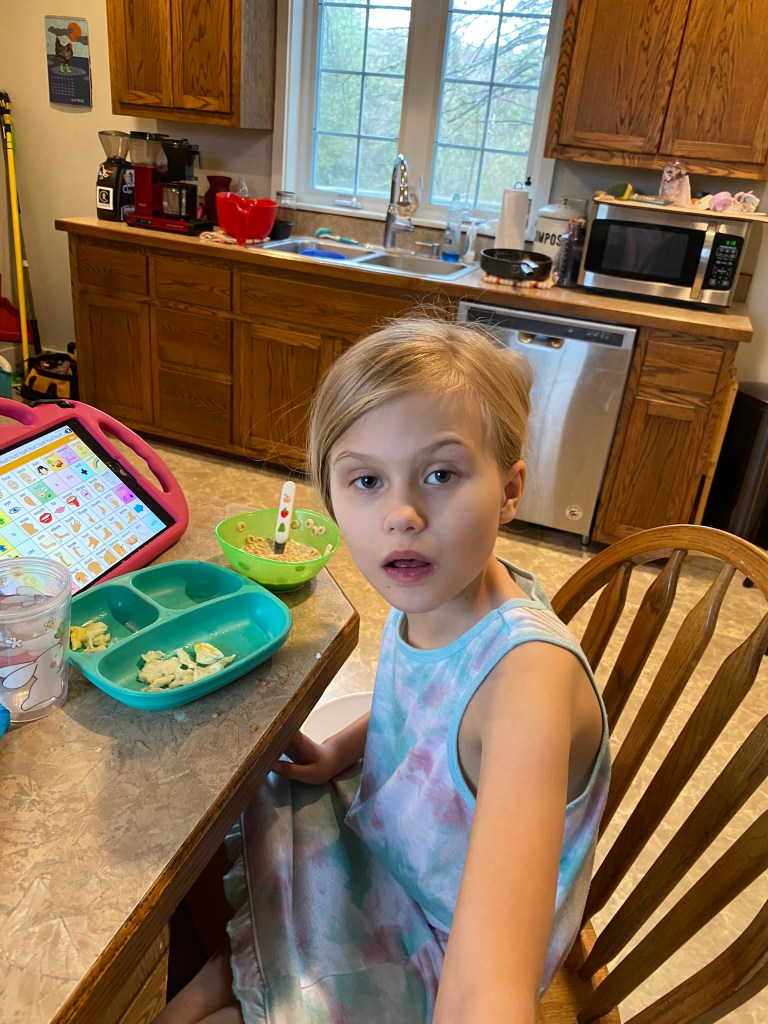 I follow another autism family on Instagram. Their account is called Evie the Explorer, and Evie is Daphne’s age and also nonspeaking. Lately, her behavior has changed dramatically–she’s become more aggressive and resistant. She’s refusing to go to school. Her mother shared that everything about her daughter’s behavior “screams WRONG WRONG WRONG,” but they don’t know what’s going on. Her family and school team have prepared a list of behavior changes and other data to present to the ER staff when Evie goes in soon for treatment. It sounds like most of her team is going to the hospital because Evie’s mother is afraid the doctors won’t believe her that something is wrong with her child. She needs an entire group who know her daughter well to argue for Evie’s welfare.