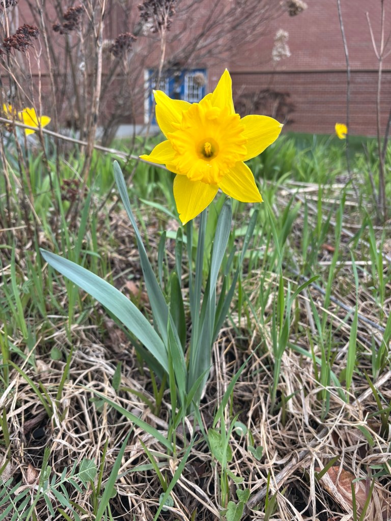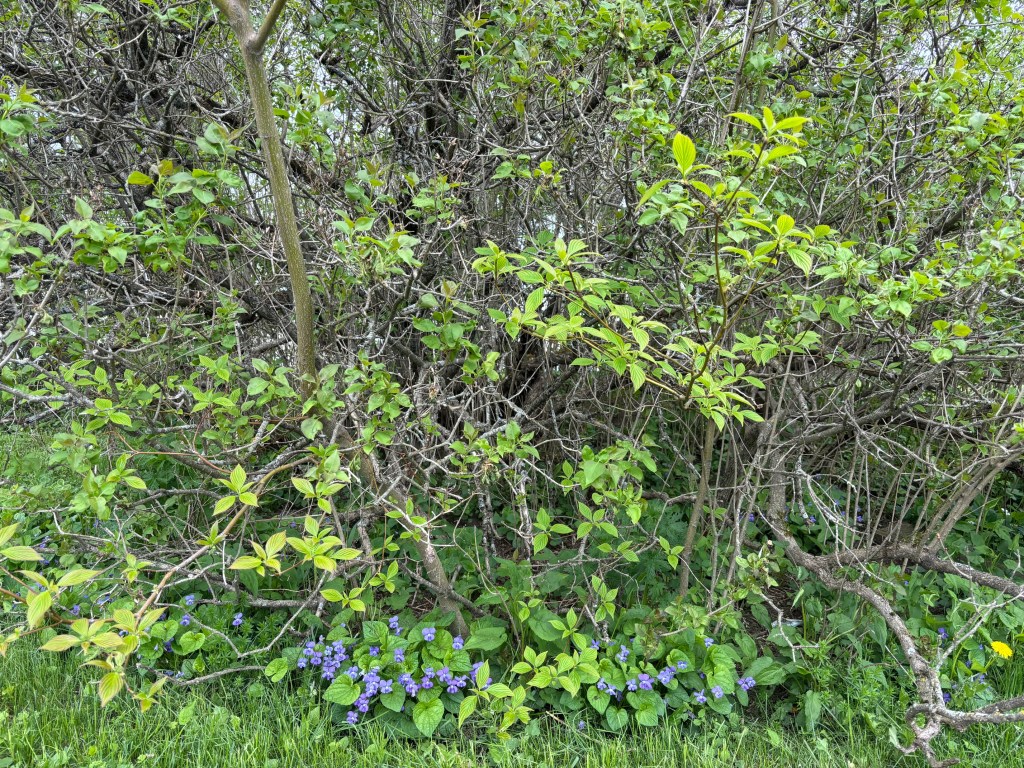 We were trying to avoid mowing as long as possible, but our yard guys showed up unexpectedly yesterday, and neither Jer nor I were in a position to dash out and ask them to hold off. Luckily, there are already a ton of new dandelions out in the shorn grass this morning, so our bumble bees won’t starve.