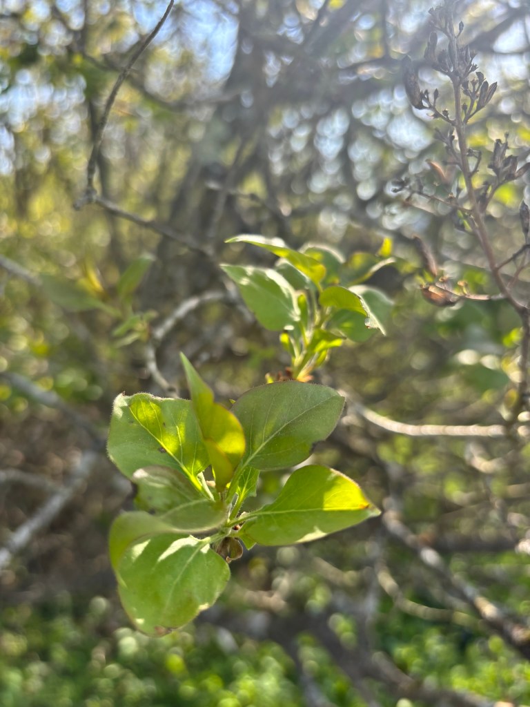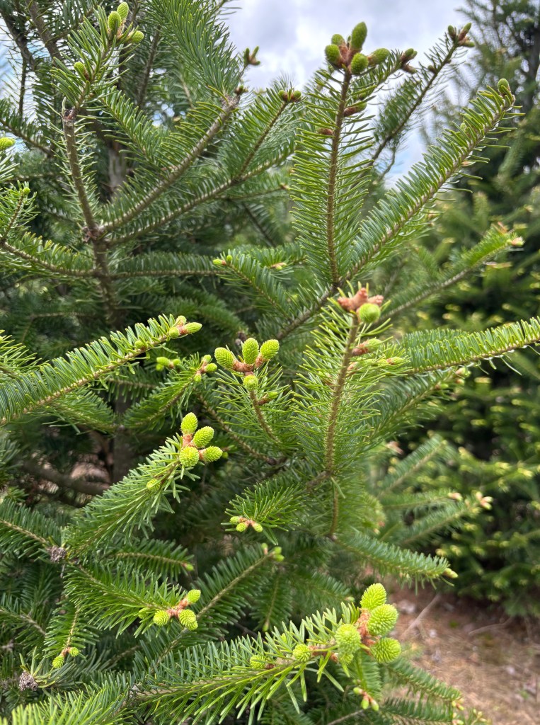 The new growth is small, a tender light green, but the newborn leaves deepen the appearance of the landscape, adding depth and texture in their contrast to the darker olive and kelly hues of the evergreens.