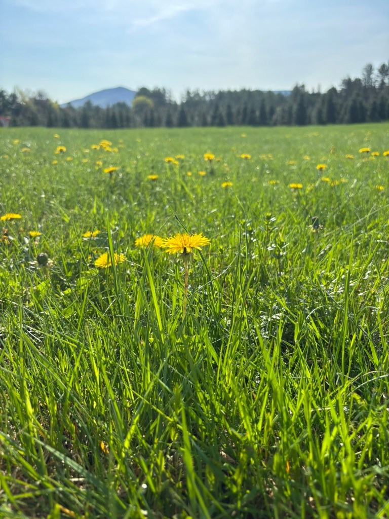 Yellow dandelions scatter across our yard, and while I know they’re just weeds, they’re also first food for the pollinators.