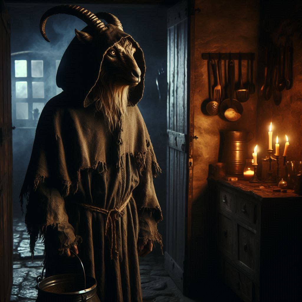 What made writing this tale so fun was weaving together little inspirations taken from my favorite selections in Rosalind Kerven’s collection. I didn’t even realize I was doing it, but when I leafed back through those stories, I realized I’d borrowed some of my favorite features from “Kate Crackernuts” (human with a goat’s head), “The Bogle of the Murky Well” (fairy abduction), “The Black Bull of Norroway” (frightening beast that’s actually gentle), and “The Daughter of King Under-Wave” (a difficult bargain). I made them my own and synthesized them into a fresh, surprisingly cohesive story that began to write itself halfway through (always a good sign).