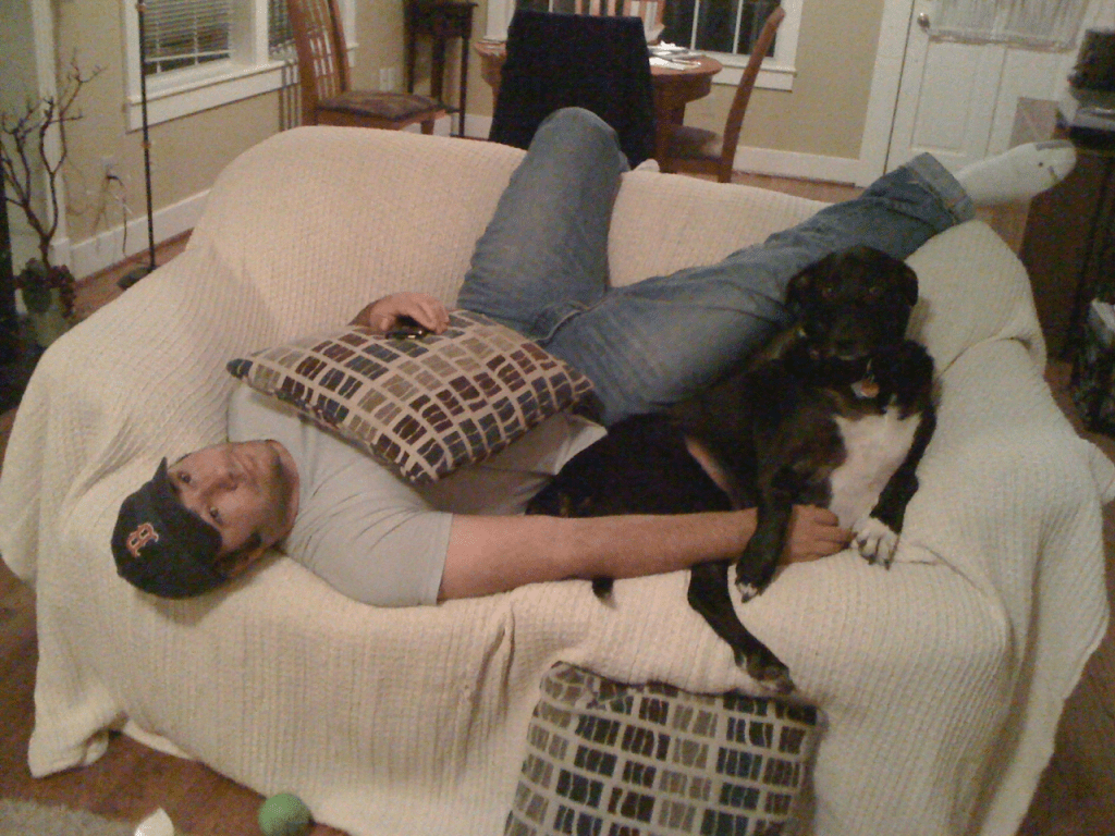 We spent an entire week together at his place right after Hurricane Ike, when half the city didn’t have power and school was cancelled for ten weekdays. A delicious cool front swept through, and the air was crisp and alive. We stayed up late every night talking and drinking bottles of expensive chianti on his porch, Jib falling asleep at Jer’s feet.
