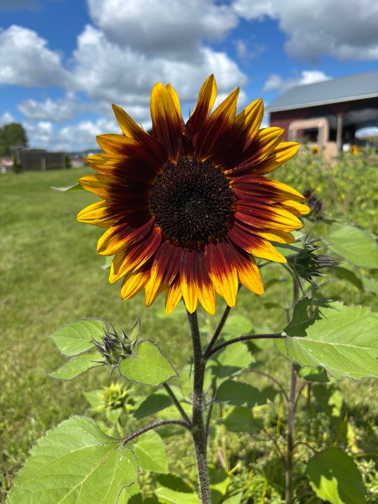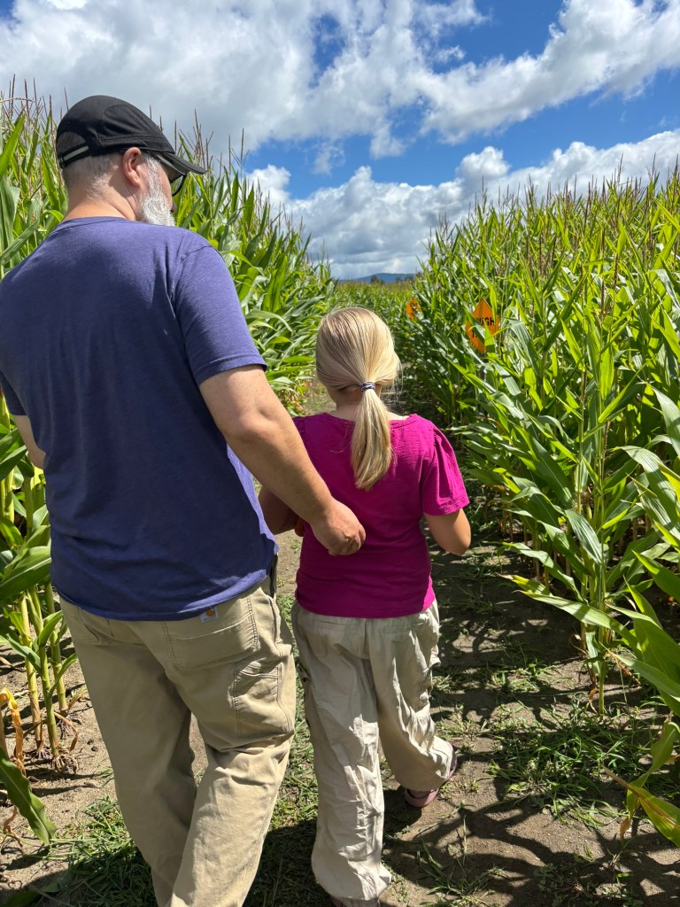 The season is definitely turning. Morning temperatures are in the mid-forties and afternoons in the high sixties. My pumpkins and sunflowers are growing well, and there are even a few red and orange leaves scattered here and there in the trees. It looks like we might have an earlier foliage season, given how dry the weather has been. Today, we spent some time at a local corn maze, and it was a nice way to invite the new season in.