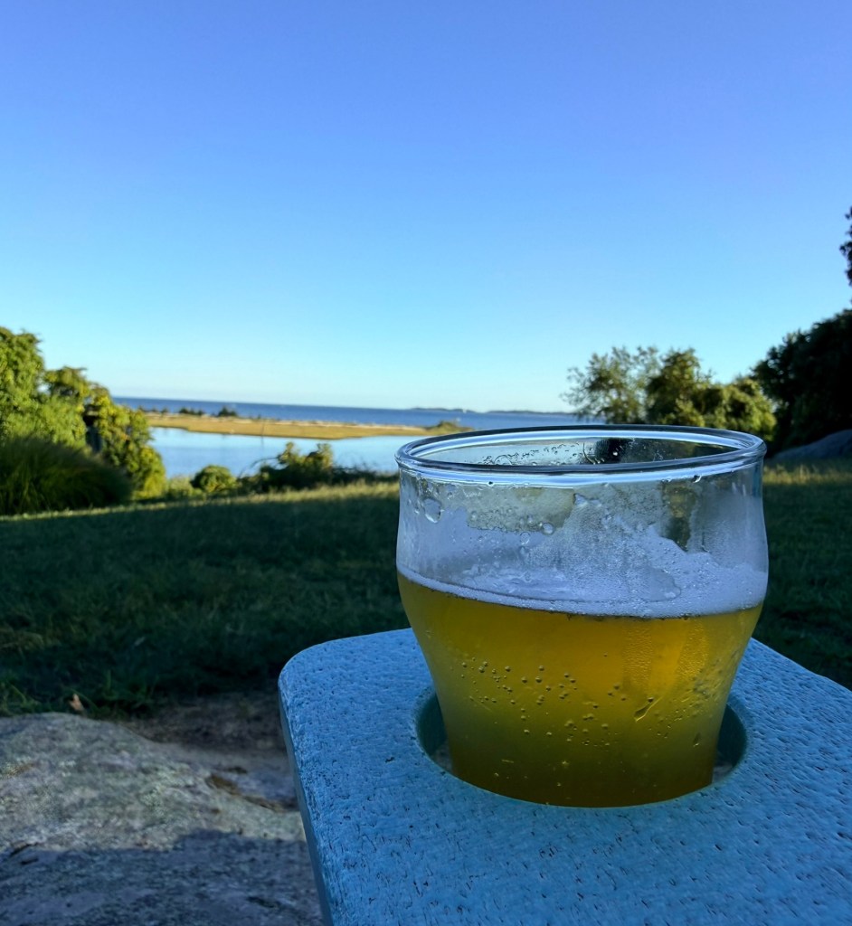 In preparation for this special event, we rented a seaside cottage via Air BnB that looks out on a little inlet marsh, and we arrived yesterday evening. After getting groceries and unpacking, Jer and I sipped local craft beer in Adirondack chairs looking out at the water while Daphne listened to her music and enjoyed the autumn sunset with us.