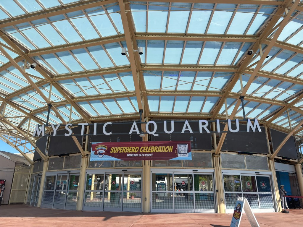 We spent two hours at the famous Mystic Aquarium, where Daph’s favorite experience was the sea lion show. She sat fully engaged in the fifteen minute performance totally sans iPhone or iPad, a rarity, and cried a little when it was over. It was an impressive show, with three sea lions zooming through the water, leaping out, and dancing, waving, and doing handstands on the stage behind the tank. An actual story unfolded–the animals and their trainers made up the Sea Squad, and they were all fighting to clean up the beaches of the Pacific Northwest. The environmental message was kid-friendly and well-done, and the sea lions were sleek and graceful.