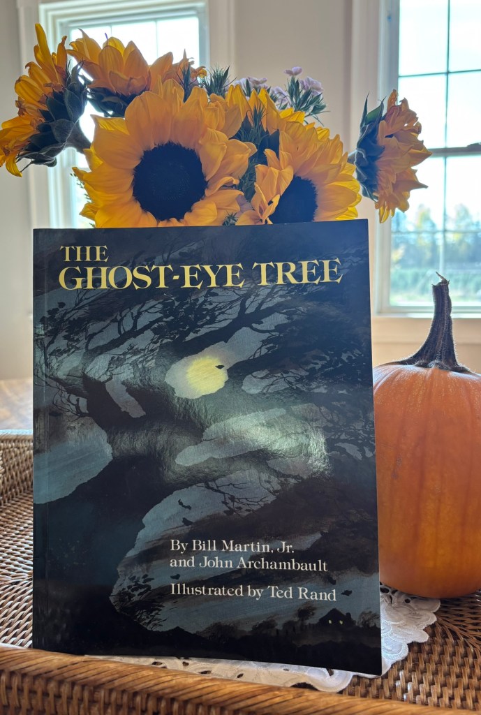 The first thing I did to celebrate was pull out Daphne’s Halloween books. We started reading them right away, including The Ghost-Eye Tree by Bill Martin Jr. and John Archambault, with illustrations by Ted Rand.