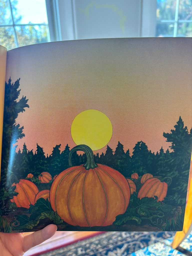 It is also written in rhyming verse (all the way through unlike Ghost-Eye), so it also has that atmospheric sing-song quality, and its pictures are just gorgeous–also very much like Vermont, where we live.