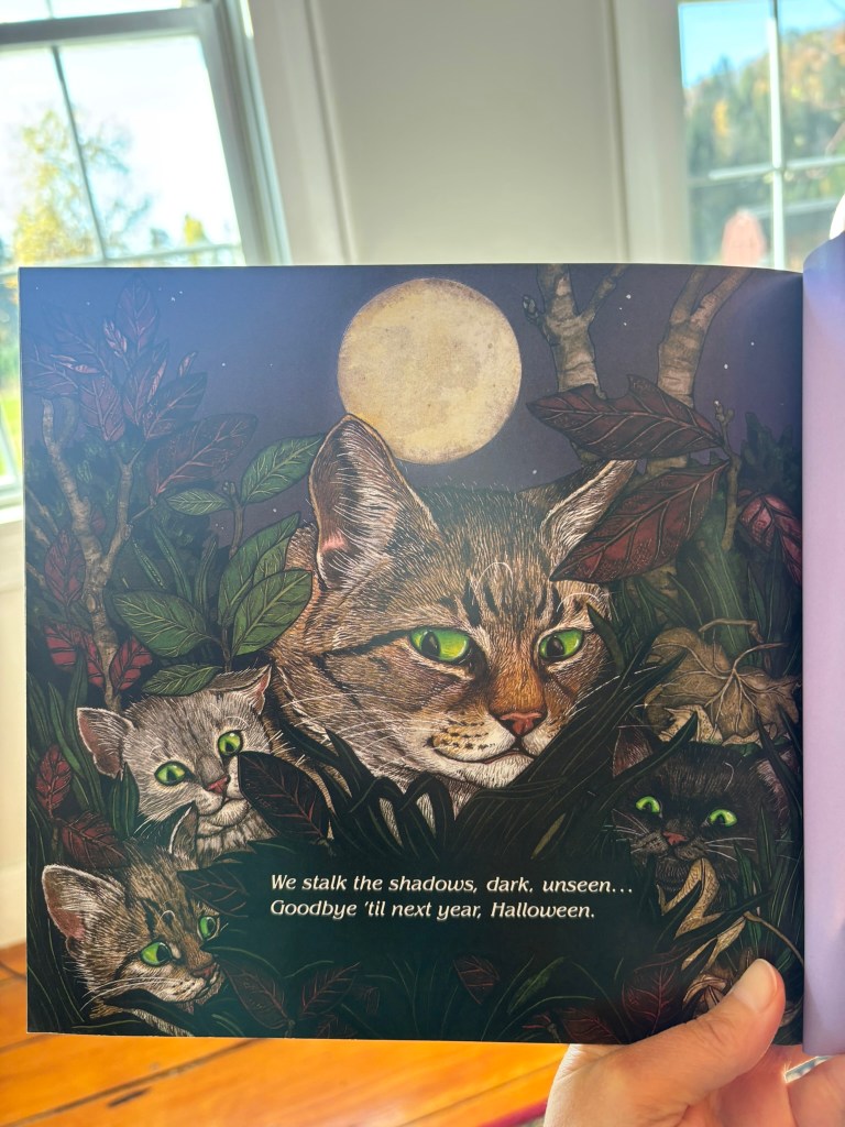 We haven’t read this one yet this year, but it’s also one of my favorites. I don’t remember it from school; I only know it as an adult, and I adore the delightful, surprising point of view from which it’s written–that of a mama cat keeping her kittens safe under the porch on Halloween night as all the strange ghoulies and creatures come and go.