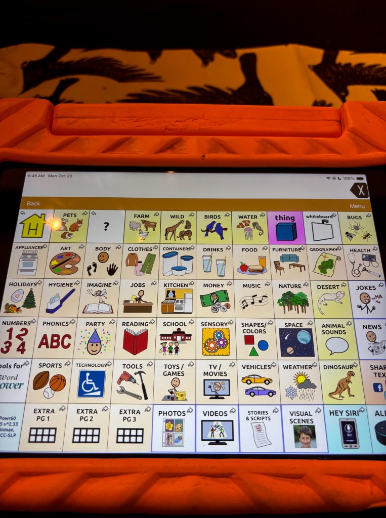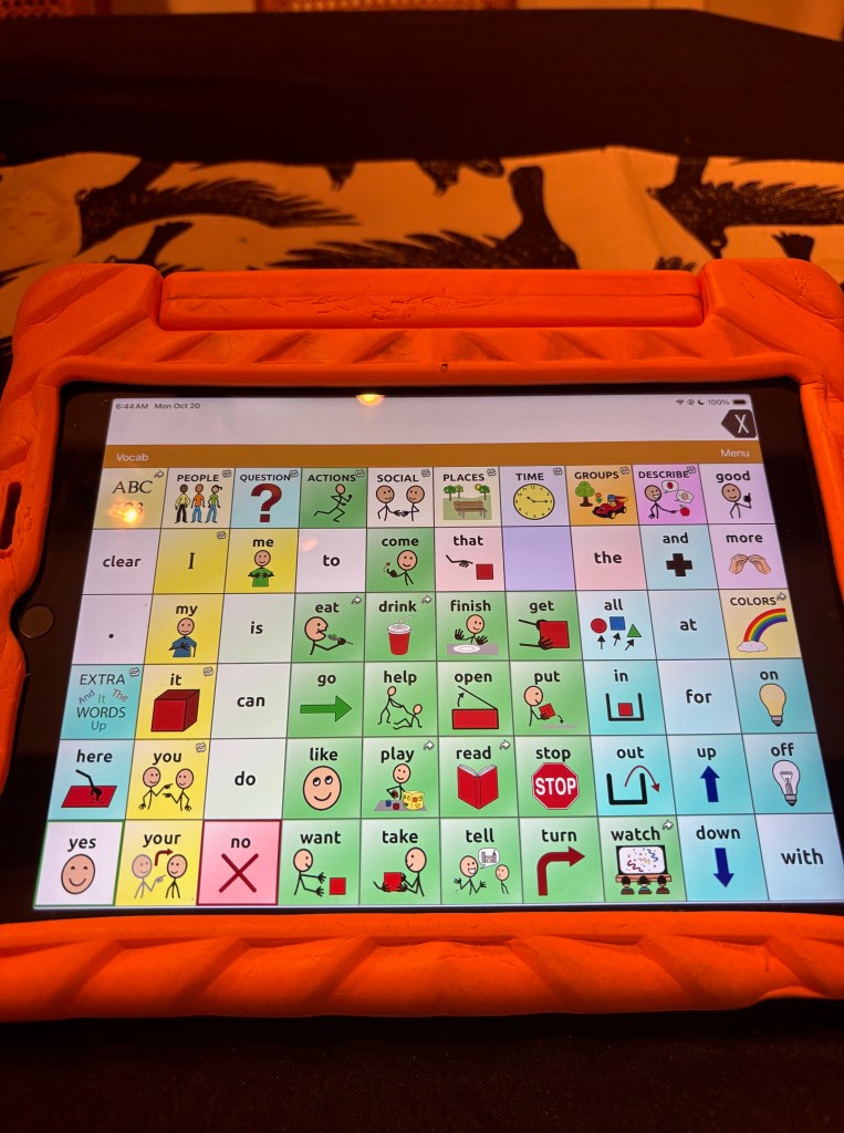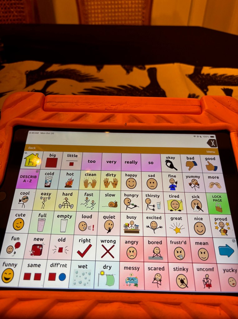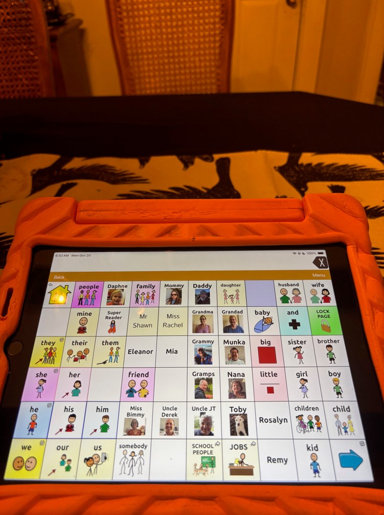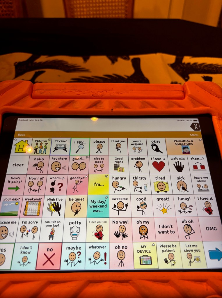 I am eternally grateful for this technology and for all the speech therapists, educators, other experts, and families/advocates who do so much to empower AAC users and teach the world about its possibilities, normalizing its use for everyone.