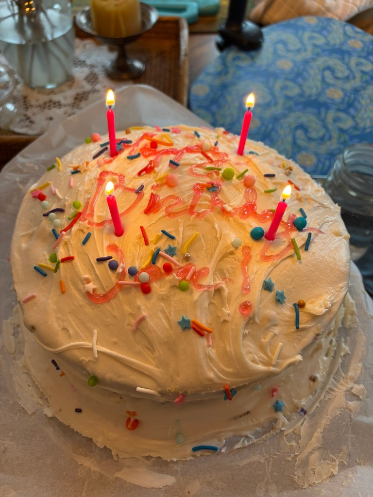 We also enjoyed a delicious cake my husband baked himself, and I’ve had a blast spending an Amazon gift card from my in-laws and buying a package of Pilates classes with the money from my own parents. I have been absolutely spoiled.
