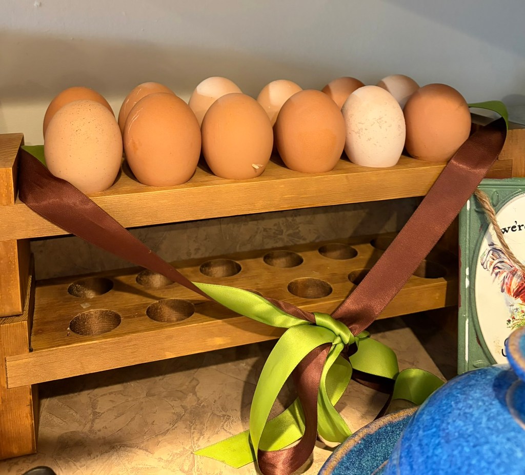 That means our hens are happily free-ranging and laying more eggs.